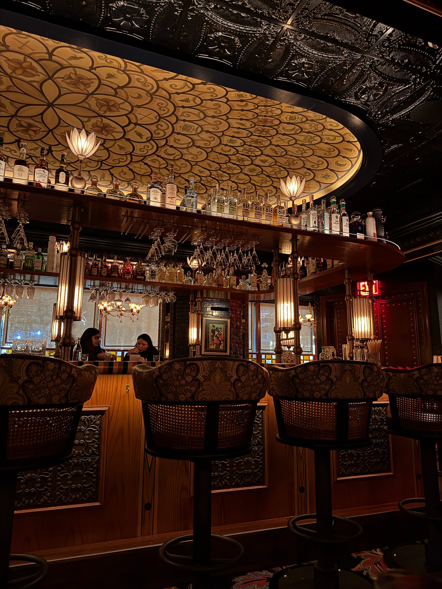 The interiors are theatrical and opulent in the best way - stained glass windows, rich textiles, and lighting fixtures I was practically drooling over. It reminded me of 42, the cocktail lounge above Gymkhana - that same transportive, slightly surreal feeling where you forget where you are for a few hours. Even the flatware was impeccable (imported directly from India, of course).