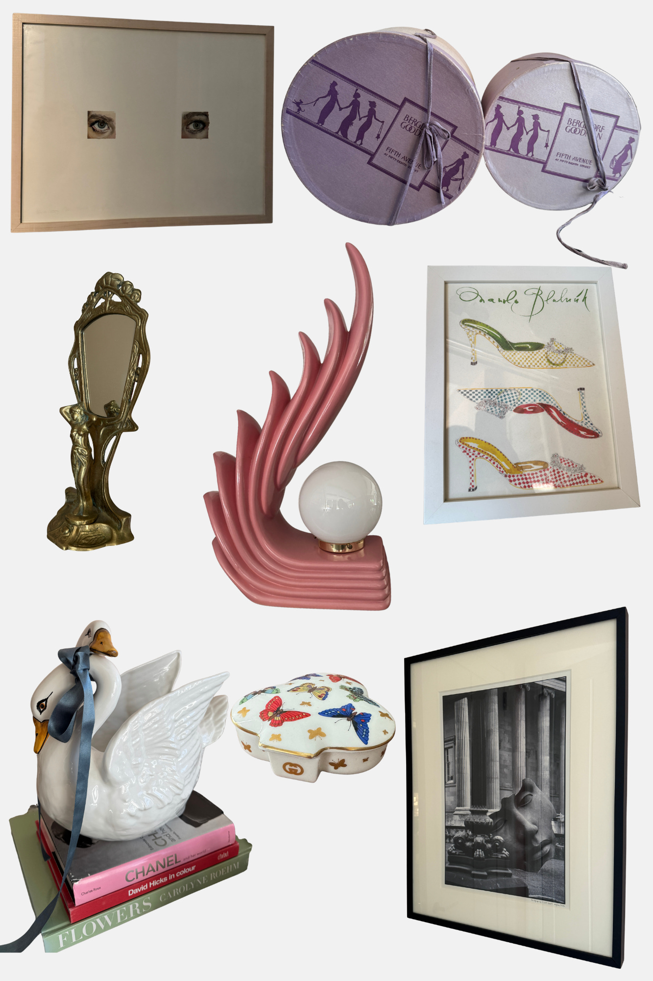 Vintage>new, almost always: Pre-loved pieces with a history tend to speak to me more than anything shiny in a store. I have a piece of art that previously hung in a room at the Gramercy Park Hotel, an Art Deco lamp I found in Philly, a porcelain Gucci butterfly container from an antique mall in New Jersey, a pair of Bergdorf’s hat boxes (from 1960 & 1965) with original delivery stickers and a very chic Upper East Side address still on the back. I always make a point to visit antique shops when I travel - and locally in upstate NY & NJ - and I love falling down the rabbit hole of online auctions (Rago, Wright, LAMA…occasionally Julien’s, where I consistently lose bids on Edith Head costume sketches).
