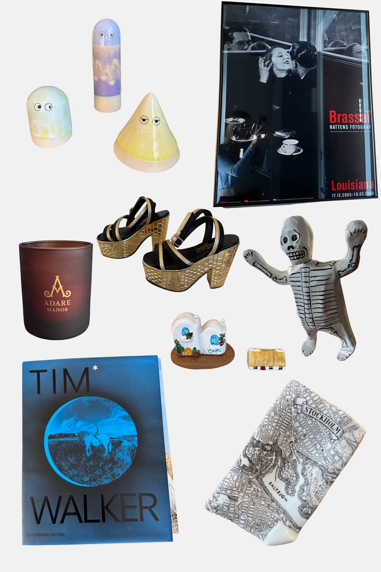 Always bring something home from your travels: My apartment is filled with small reminders of different trips - funny faced ceramics from Copenhagen, a papier-mâché skeleton from Mexico City, a gilded box from Venice, coffee table books from Berlin.